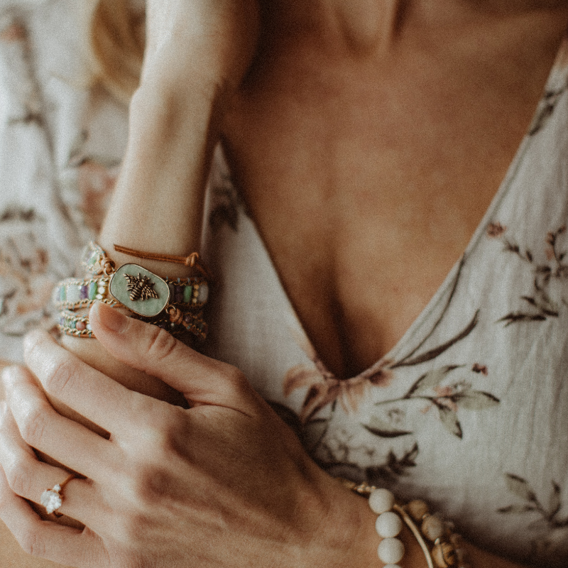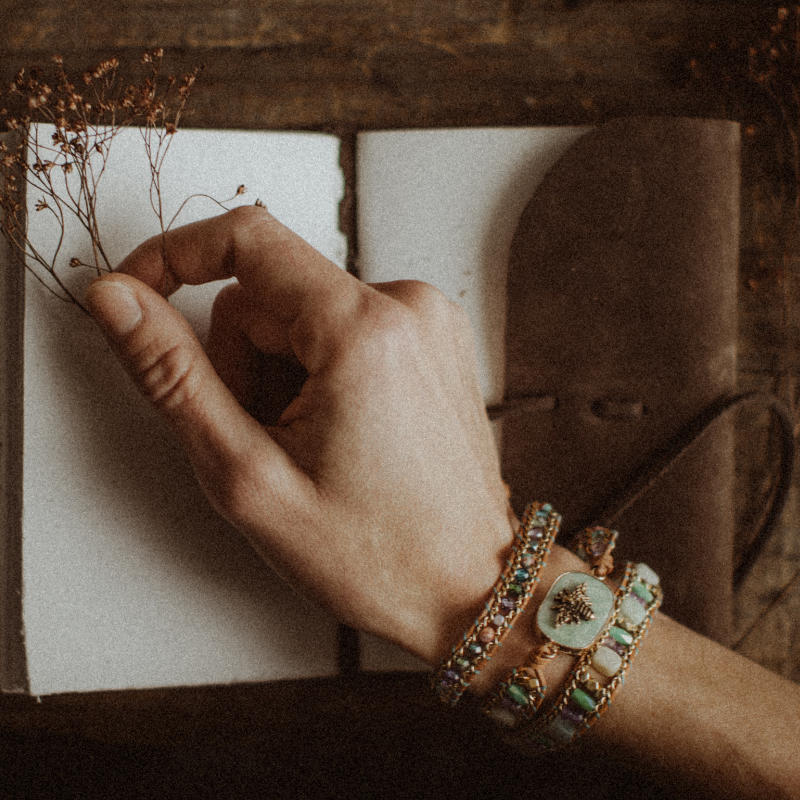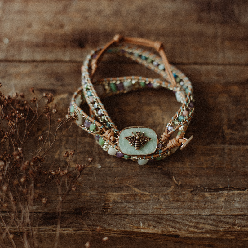 Embrace eco-conscious style with our Save the Bees Bracelet, featuring Amazonite Natural Stone Crystals intricately woven with leather strands in a triple wrap clasp. Showcasing your commitment to bee conservation, this stunning bracelet resonates with our natural hippie community. Join us in raising awareness and making a fashionable statement for a cause close to our hearts.