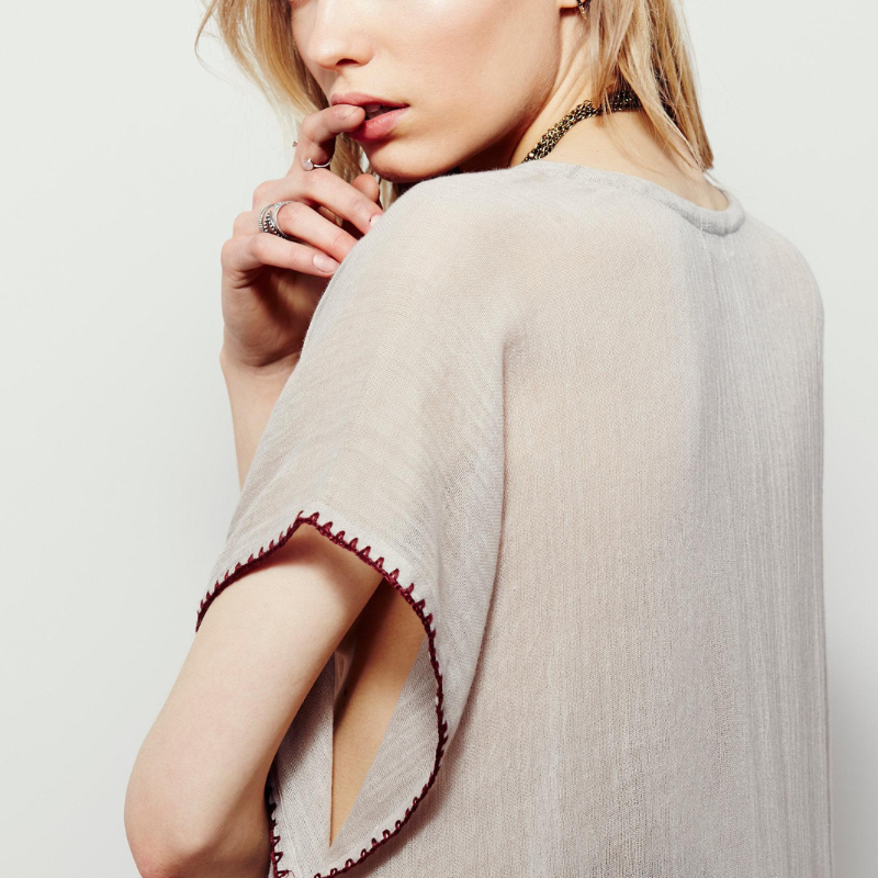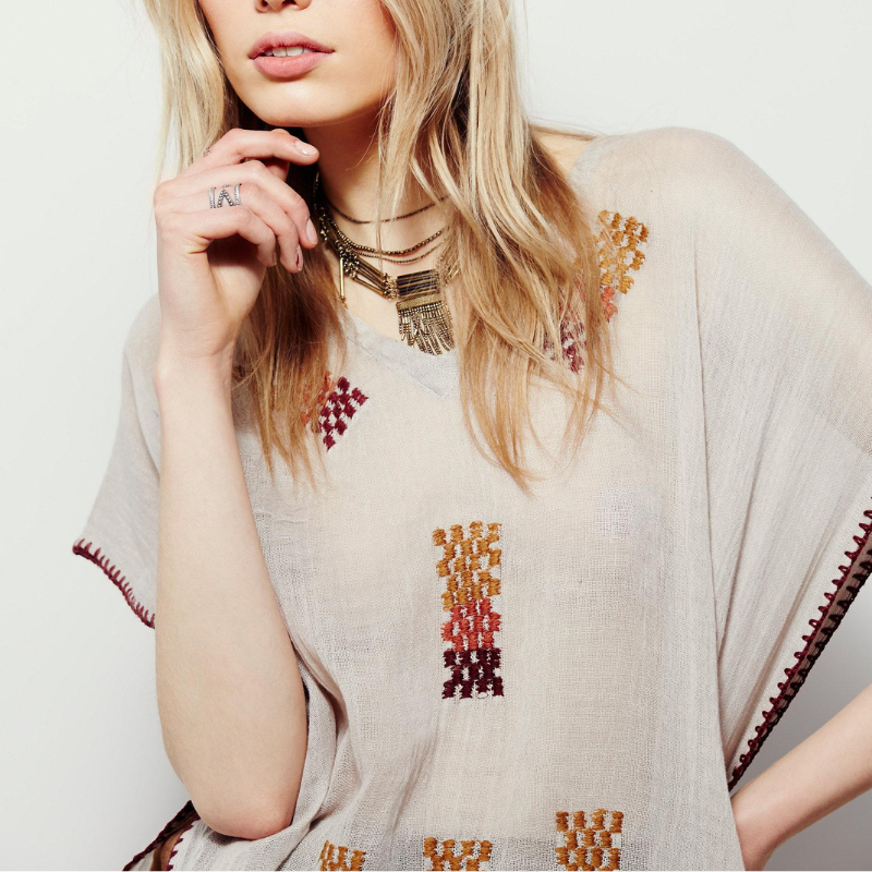 If this Kaftan had a mood, it would say relaxed Bohemian. Made out of Cotton Broadcloth, This long sleeveless Kaftan has hand-stitched Embroidery to the front, in a Aztec style design. Dusty Grey in color, and beautiful pattern stitching along the hemlines. We love how many ways you can choose to wear this.