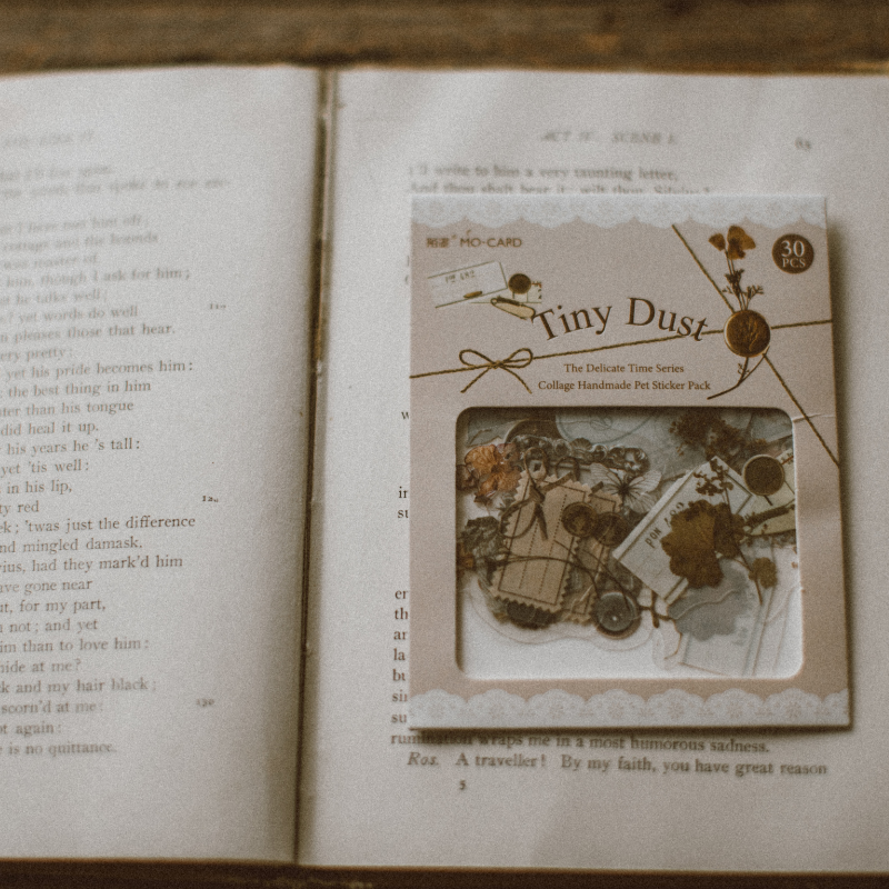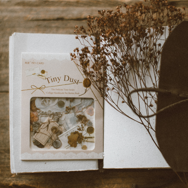 Tiny Dust (Brown): Discover the beauty in simplicity with stickers depicting delicate motifs like falling leaves, tiny pebbles, and quaint country settings. These earthy brown stickers will remind you to find joy in life's little details.