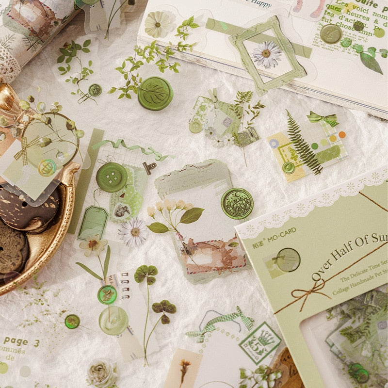 Over Half of Summer (Green): Embrace the lush greenery of midsummer with stickers showcasing verdant landscapes and blooming flora. These green wonders will encourage you to connect with nature, take leisurely strolls, and cherish the abundance of life.